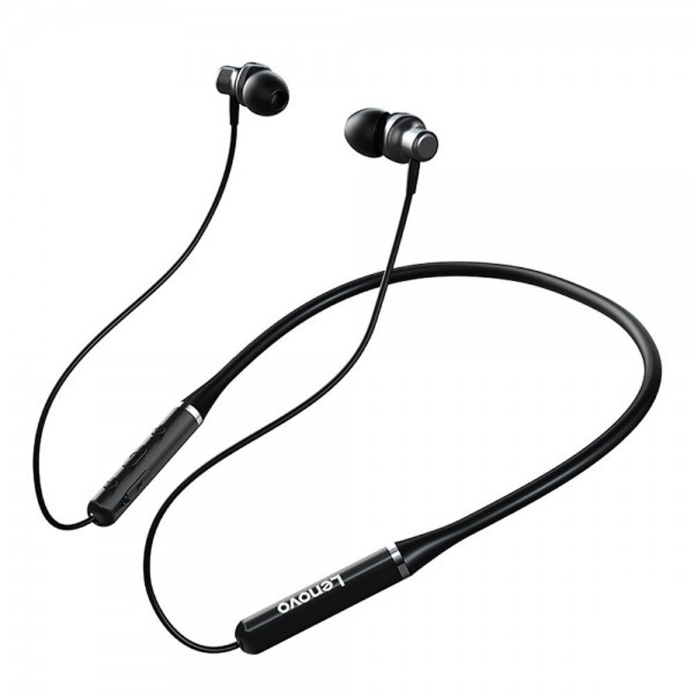 Wireless Earphones. Featuring a convenient magnetic neckband design, these earphones offer a secure fit for your on-the-go lifestyle. With Bluetooth 5.0 technology, enjoy seamless connectivity and crystal-clear audio. The waterproof construction adds durability, making them suitable for any environment. Immerse yourself in stereo sound quality, and stay connected with the built-in microphone for hands-free calls. Elevate your audio experience with the Lenovo HE05 – where comfort, durability, and performance unite.